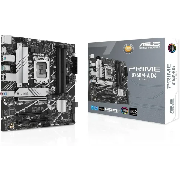 ASUS PRIME B760M K D4 mATX Motherboard – Intel B760, LGA 1700, DDR4, PCIe 4.0, Dual M.2
