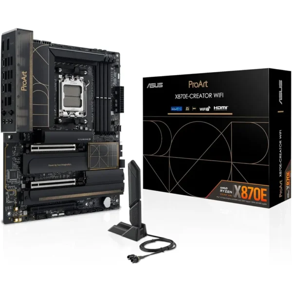 The ASUS ProArt X870E-Creator WiFi Motherboard represents the pinnacle of creator-focused engineering, delivering exceptional performance for content creators, 3D artists, and professionals demanding uncompromising power. Built on the AMD X870E chipset with Socket AM5, this ATX motherboard provides comprehensive support for AMD Ryzen 9000, 8000, and 7000 Series processors, ensuring you harness cutting-edge computing power for demanding creative workflows.