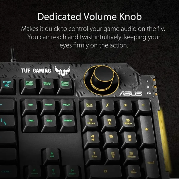 ASUS RA04 TUF GAMING K1 – Membrane Gaming Keyboard with RGB, Volume Knob & Spill-Resistance