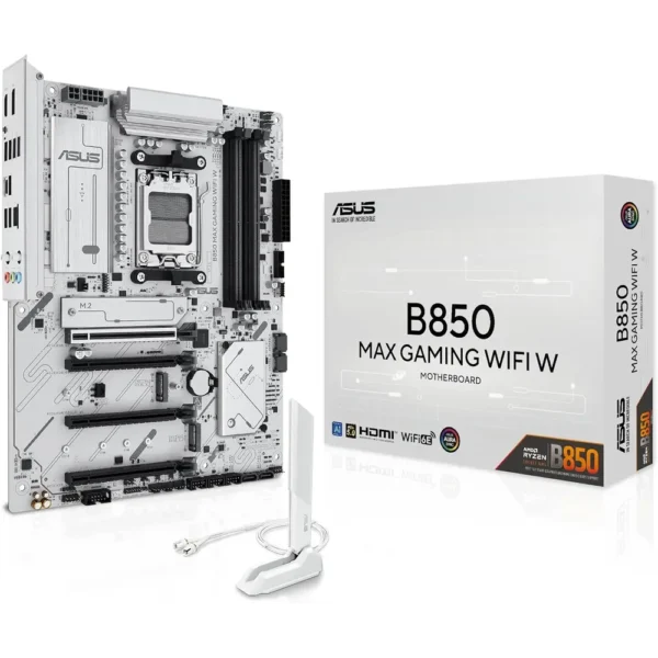 - AMD B850 Chipset – The ASUS ROG STRIX B850 MAX GAMING WIFI WHITE supports AMD Ryzen 9000, 8000, and 7000 series processors with Socket AM5 for exceptional gaming performance