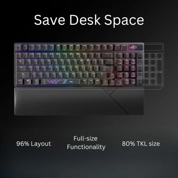 - ASUS ROG Strix Scope II 96 delivers a 96% layout—compact yet fully functional with a number pad and all essential keys.