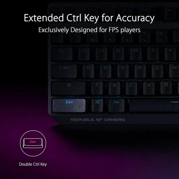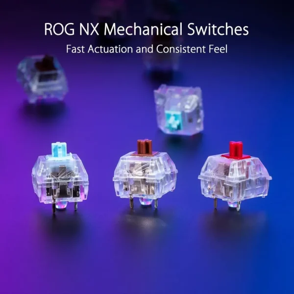 - ROG NX Red mechanical switches deliver smooth, quiet, and responsive keystrokes—core to the ASUS ROG Strix Scope NX experience