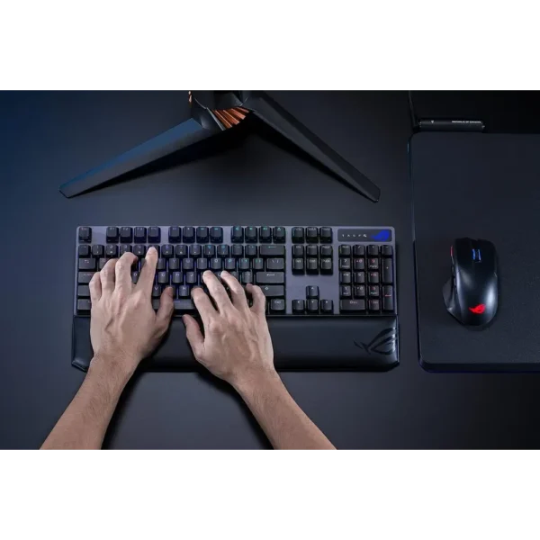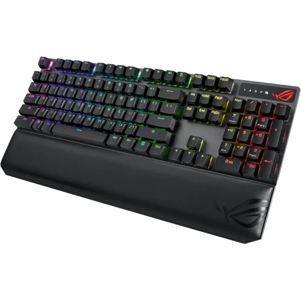 Gamers benefit from FPS-ready design elements like the enlarged Ctrl key and a Stealth key that instantly disables Windows keys. A plush magnetic wrist rest supports comfort during long sessions, while Aura Sync RGB lighting syncs with your entire ROG ecosystem. Precision, comfort, and freedom—all in one elite wireless keyboard.