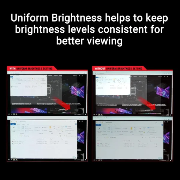 - Uniform brightness mode maintains consistent luminance across the entire screen.
