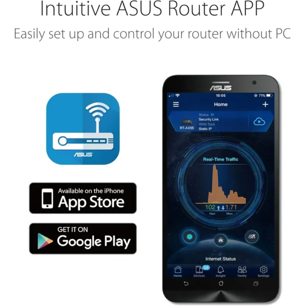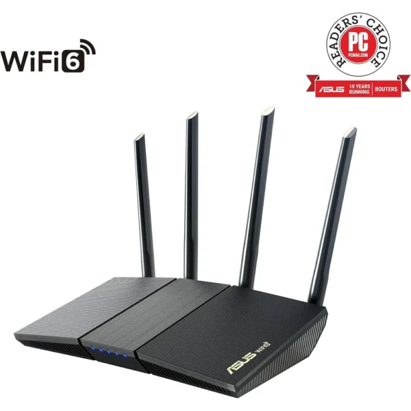 - Boost your smart home with the ASUS RT-AX52 WiFi 6 Router, delivering ultra-fast AX1800 speeds (574 Mbps on 2.4GHz + 1201 Mbps on 5GHz).