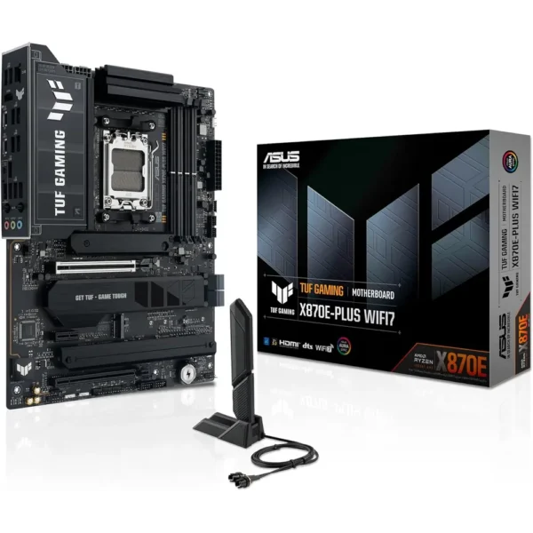 • The ASUS TUF GAMING X870E-PLUS WIFI7 supports AMD Ryzen 9000, 8000, and 7000 series processors on the durable AM5 socket.