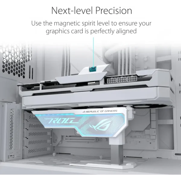 Built-in magnetic spirit level ensures perfect alignment for the ROG Herculx Graphics Card Holder White.