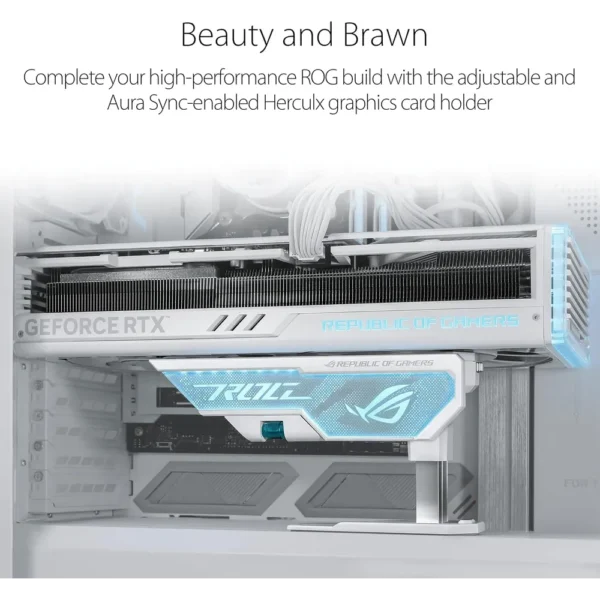 Securely fortifies your heavy GPU with the ROG Herculx Graphics Card Holder White.