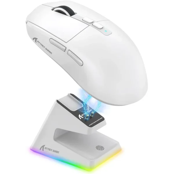 ATTACK SHARK X6 White Wireless Gaming Mouse 49g with RGB Charging Dock & 26K DPI Sensor with Tri-Mode Connectivity