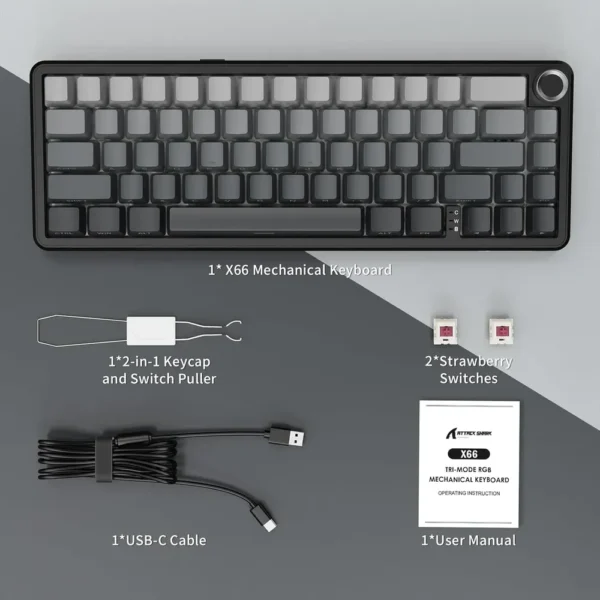 ATTACK SHARK X66 Moonlight – 65% Wireless Gasket Mechanical Gaming Keyboard | 2.4/Bluetooth/Usb -C