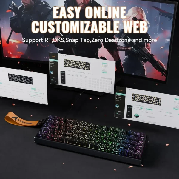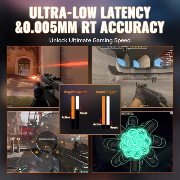 Powered by Hall Effect magnetic switches, the X68Â offers 0.005mm actuation precision with fully adjustable rapid trigger functionality. The custom gaming chip delivers 8000Hz polling rate and 0.08ms ultra-low latency, ensuring every keystroke registers instantly during competitive gameplay in titles like Valorant, CS2, and Apex Legends.