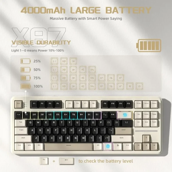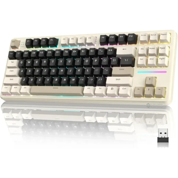 ATTACK SHARK X87 White – 80% Wireless 2.4/Bluetooth Mechanical Keyboard with Gasket Mount, Hot-Swappable Switches & RGB