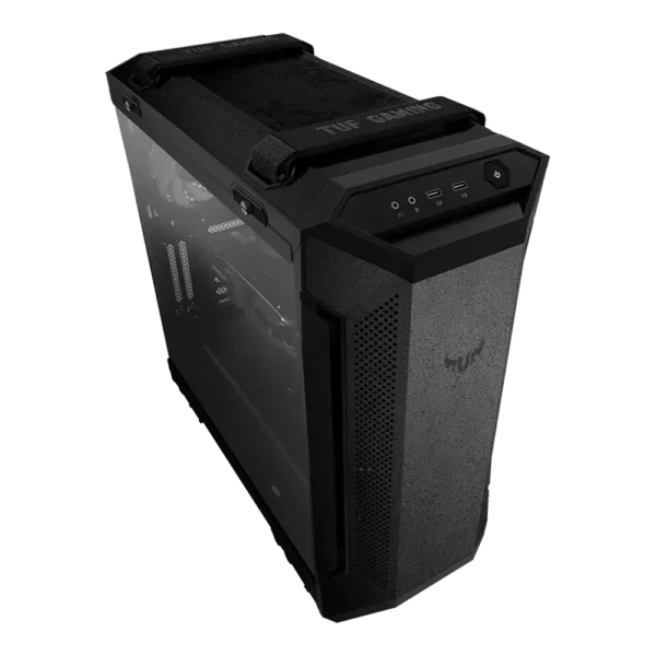 Showcase your build with the full-view, 4mm thick smoked tempered glass side panel on the TUF Gaming GT501 Case.