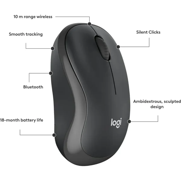 Logitech M240 Bluetooth Silent Mouse connects fast and easily with reliable Bluetooth — no dongle needed.