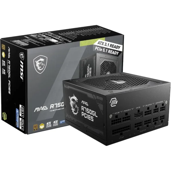 MSI MAG A750GL PCIE 5 750W ATX 3.1 Power Supply – 80 Plus Gold Certified, Fully Modular, PCIe 5.1 Ready PSU with Flat Cables