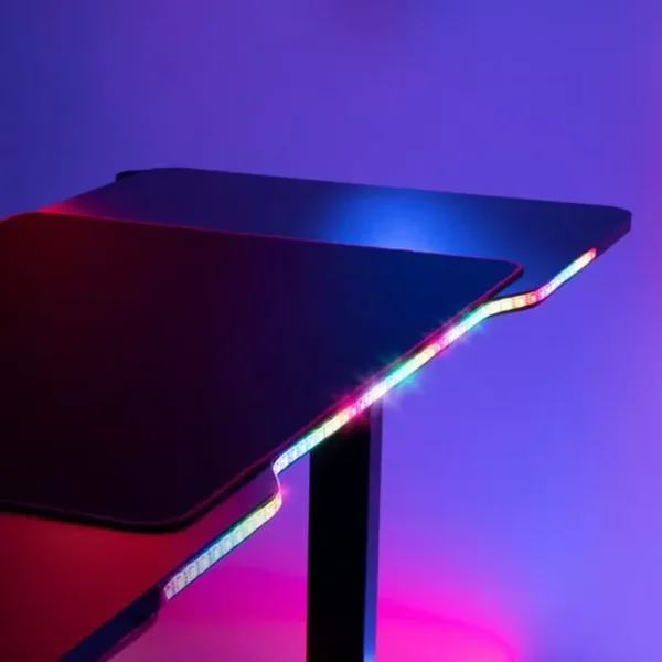 Experience the ultimate setup with this RGB Lighting Sit-Stand Gaming Desk, featuring vibrant, user-controlled ambient lighting.