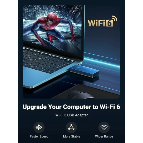 Is your PC suffering from slow and unstable internet? Modernize your connection with this advanced WiFi 6 dongle from UGREEN. This compact USB adapter instantly upgrades your computer to the latest Wi-Fi 6 standard. It provides faster speeds, wider coverage, and a more stable connection for all your online activities.
