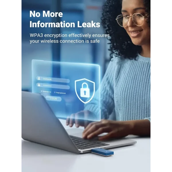 The dongle features built-in drivers for Windows 10 and 11. It works right out of the box with no complicated software installation. Your network safety is also a top priority. The integrated WPA3 protocol offers superior wireless security. It helps keep your personal information safe from intruders.
