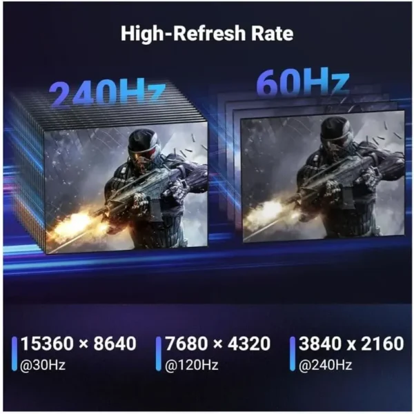 Optimized for Gaming enthusiasts: supports 8K@240Hz, 4K@240Hz, FreeSync, G-Sync, VRR, and ALLM.
