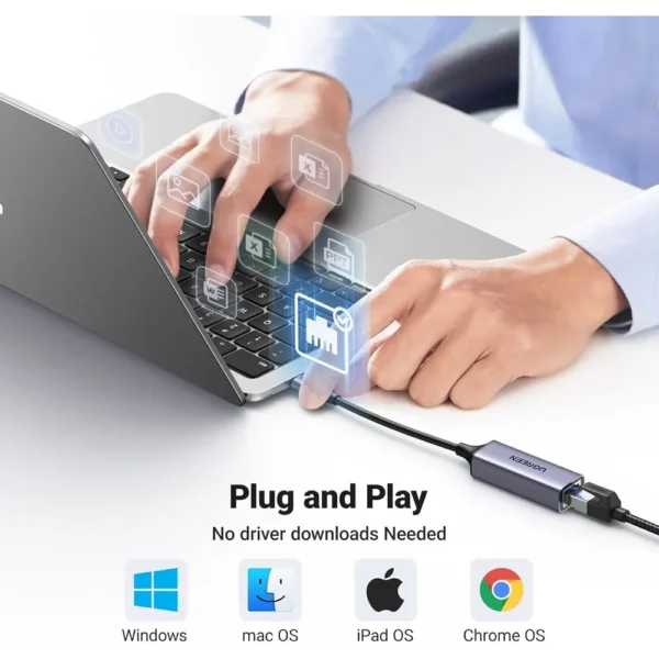 UGREEN USB Type C to Ethernet Adapter delivers fast and stable Gigabit wired internet.